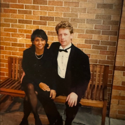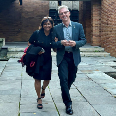 Dr. James Orbinski and his wife Rolie Srivastava at Massey College, 2002 and 2024.